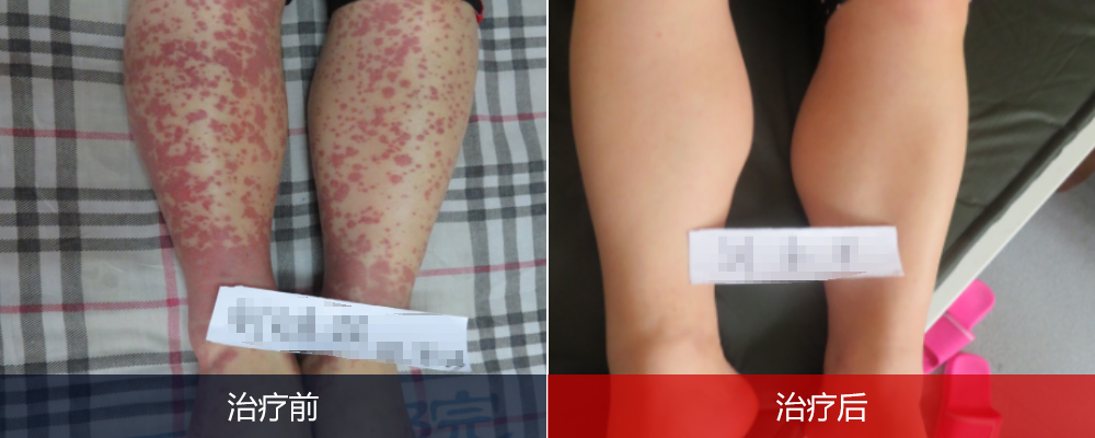 治疗过程中,钱女士积极配合治疗,治疗4次后,双腿上的红点红斑逐渐开始消退,治疗6次后,红点红斑已经消退不见了,钱女士感叹:这真的是看的见的效果呀,12点的紫癜路,今天算是走到头了。经检查结果可以看到,钱女士身体已经完全回正常,可以回家进行后续的巩固治疗了。